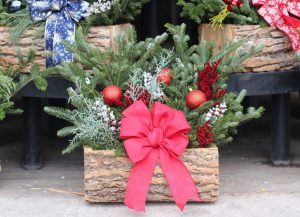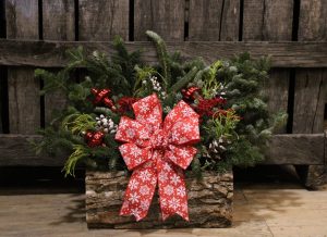| 12″ Decorated Wood Box – $42 | 22″ Greens Wreath – $25 | 22″ Greens Wreath with Bow – $32 |