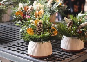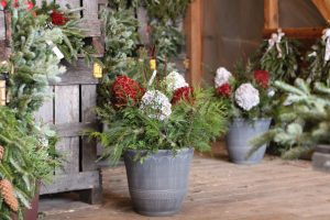 December is filled with beautiful greenery arrangements. Fresh greens are cut and arranged in hanging basket arrangements and table centerpieces. Your orders for greenery arrangements are welcome! Fraser Fir Wreaths are decorated with real dried fruit, dried flowers, bright decorations, lights, and more! You are welcome to custom order your personalized wreath. Choose a bow color, red or white lights, and personalized decorations. We are happy to serve you!