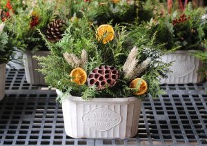 | Wicker Hanging Baskets – $55 | Wicker Hanging Baskets – $55 | Greens Planter – $52 |
