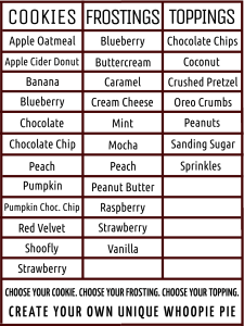 Create Your Own Whoopie Pie $4 each, 4 or more $3.50 each, 12 or more $3 each