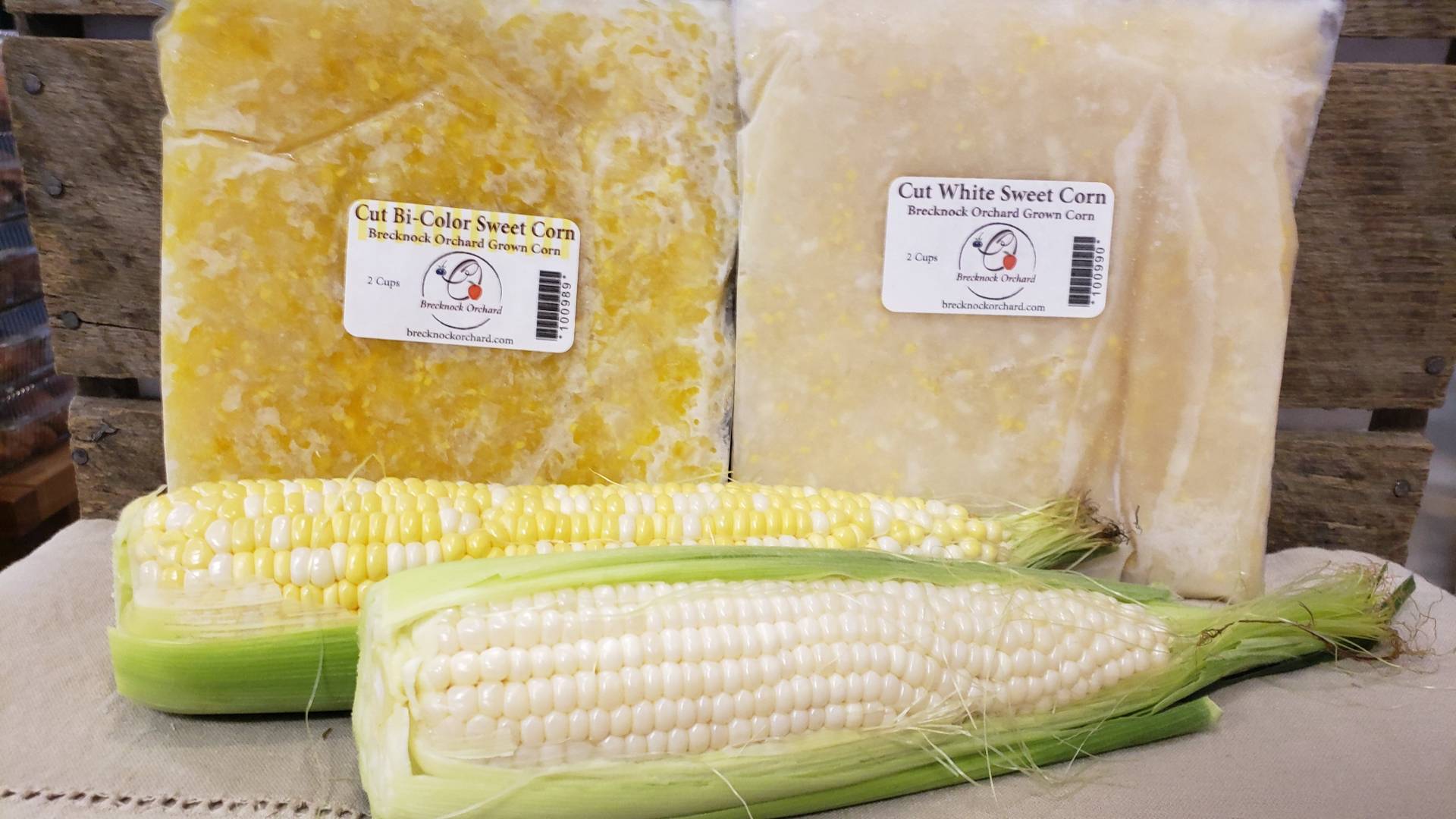 Is It Cut or Creamed? Mature ears of Brecknock Orchard grown sweetcorn are selected including white, bicolor, and yellow varieties that freeze well, with tender kernels. Each ear is hand-harvested, husked, desilked, and cut from the cob. The tender corn kernels release their natural cream during the cutting process. This natural cream is the liquid or “cream” that is included in every package of corn. 100% natural; no preservatives or ingredients added.